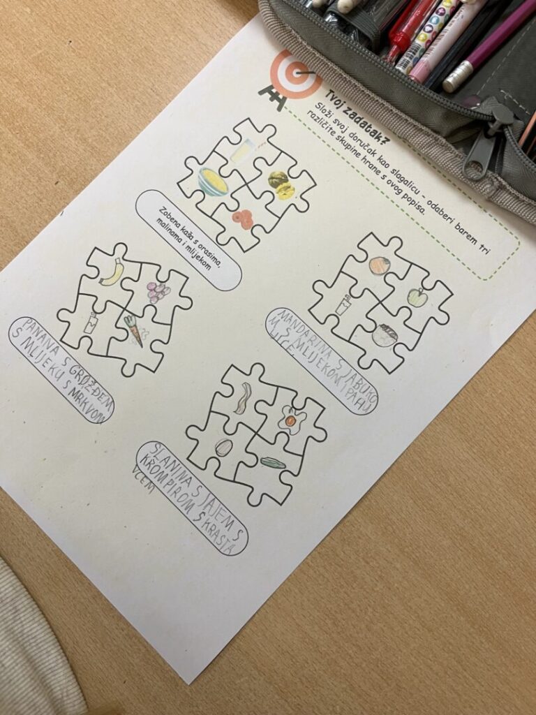 Učenike se potaknulo da isprobaju nove okuse, kušaju zdrave recepte i ocjenjuju nova jela. Pod vodstvom pedagoginje, učenici su pripremili i degustirali chia smoothie, muffine s mrkvom i jabukom te pirove pahuljice s voćem. Najbolje ocijenjeni recept bili su muffini s mrkvom i jabukom. Na ovako zabavan i maštovit način kod učenika se potaknula znatiželja i razvoj zdravih prehrambenih navika.